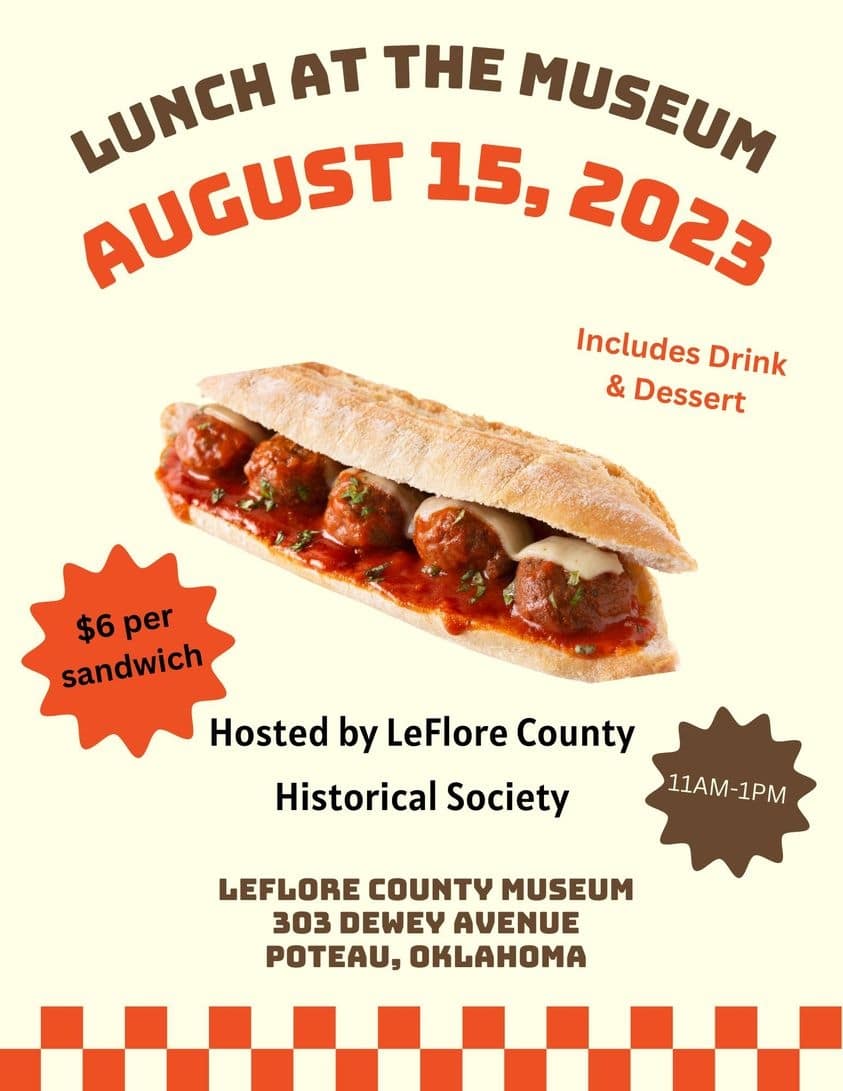 The LeFlore County Historical Society is pleased to announce their next Tuesday Lunch at the Museum will be August 15, 2023.