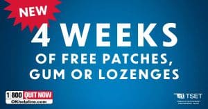 Along with NRT, the Helpline offers a comprehensive range of free services including live coaching, personalized quit plans, web tools, supportive texts and emails. Services are available by phone at 1‑800‑QUIT NOW, by texting READY to 34191 or online at OKhelpline.com.