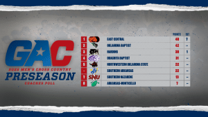 Oklahoma Baptist claimed second in the voting. While the Bison must replace Maxamillian Wheeler – the runner-up at the 2024 GAC Championships – they return Emory Crayton, a First-Team honoree, and Ethan Banks, a Second-Team performer.