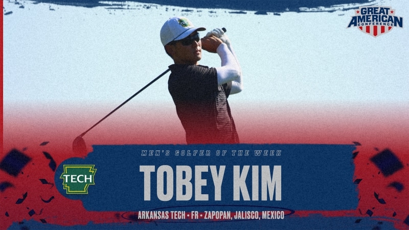 RUSSELLVILLE, Ark. – The Great American Conference announced the men’s golfer of the week for the fifth week of the fall season. Arkansas Tech’s Tobey Kim earned the honor following his performance at the Battle for the Belt.