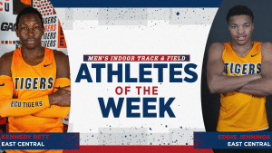 RUSSELLVILLE, Ark. – The Great American Conference announced its third GAC men’s indoor track & field athletes of the week winners. East Central captured both accolades as Kennedy Bett won the track award and Eddie Jennings earned the field honor.