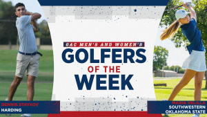 RUSSELLVILLE, Ark. – The Great American Conference announced the women’s golfer of the week for the fifth week of the fall season. Harding’s Dennis Staykov claimed the men’s honor and Southwestern Oklahoma State’s Maria Velilla captured the women’s award.