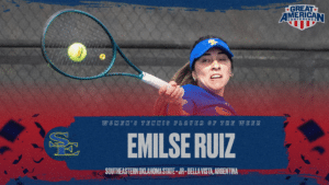RUSSELLVILLE, Ark. – The Great American Conference announced the women’s tennis player of the week for the sixth week of the 2025 season. Southeastern Oklahoma State’s Emilse Ruiz claimed the honor following an undefeated week of singles and doubles play.