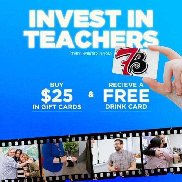 With Teacher Appreciation Week beginning on May 6, 7 Brew encourages customers to give a gift card to their teachers to show their support and appreciation for all they do.