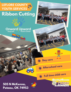 Friday, the Poteau Chamber of Commerce had the honor of joining LeFlore County Youth Services for the official ribbon cutting of the Onward Upward Daycare and Youth Center, located at 505 N McKenna, Poteau.