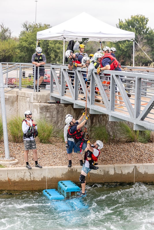 The event combines classroom instruction, hands-on exercises and a final-day competition designed to test skills under pressure in the nation’s top swiftwater training facility, RiverSport OKC, which can simulate up to class five rapids.