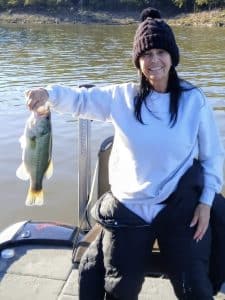 Wendy Thomas with a largemouth bass caught at Keystone Lake. Share your photos at The Dock by clicking on the photo above.