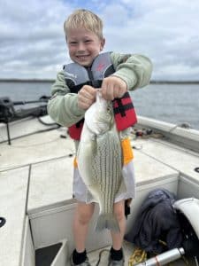 Teller C. with a striped bass hybrid caught at Thunderbird Lake. Share your photos at The Dock by clicking on the photo above.