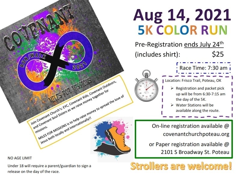 It’s official! The Covenant Church in Poteau is Hosting “Miles for Missions: 5k Color Run/Walk!”